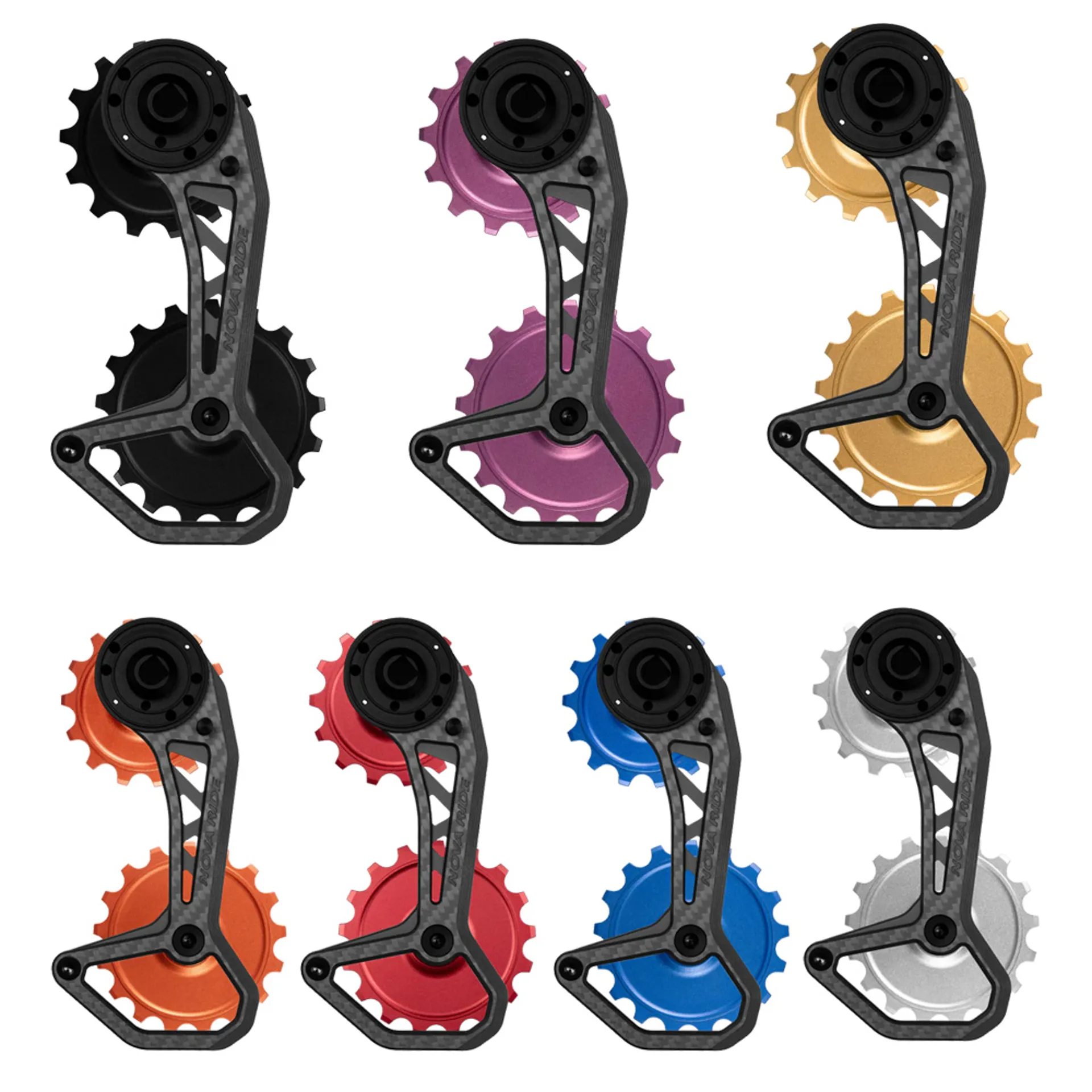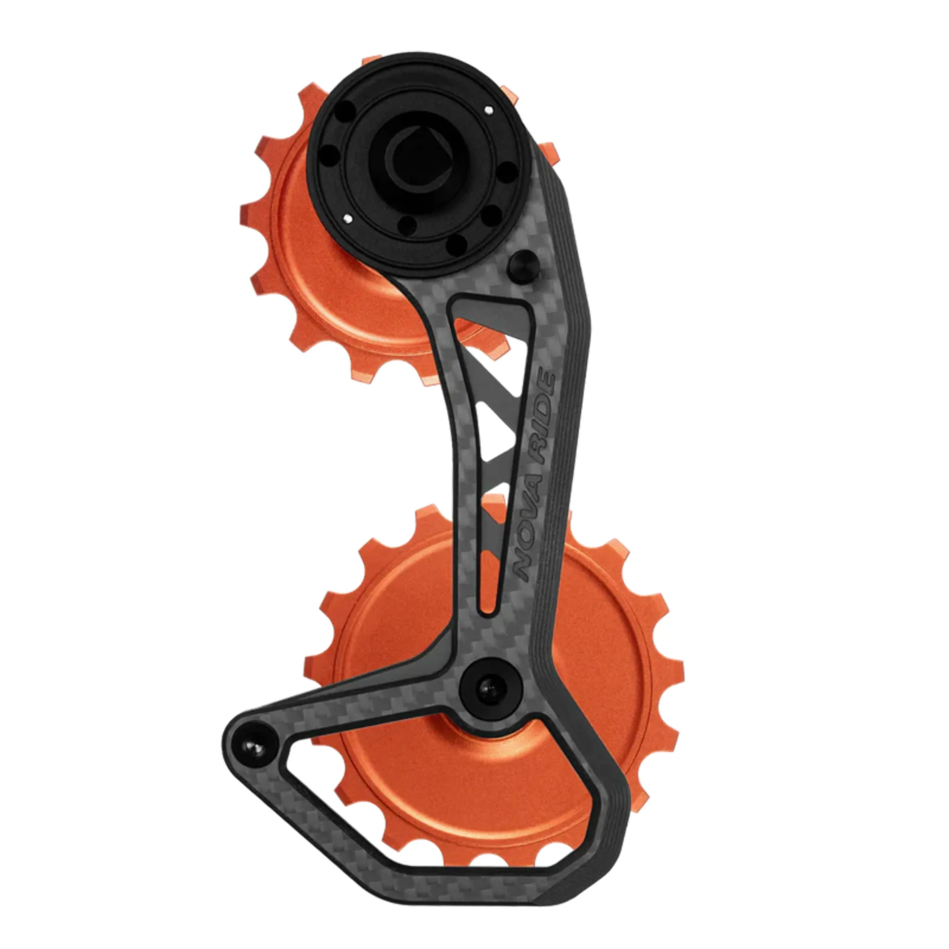 The Nova Ride CCD (Carbon Ceramic Derailleur) EVO S OSPW is an oversized pulley wheel system upgrade for road bike derailleurs.