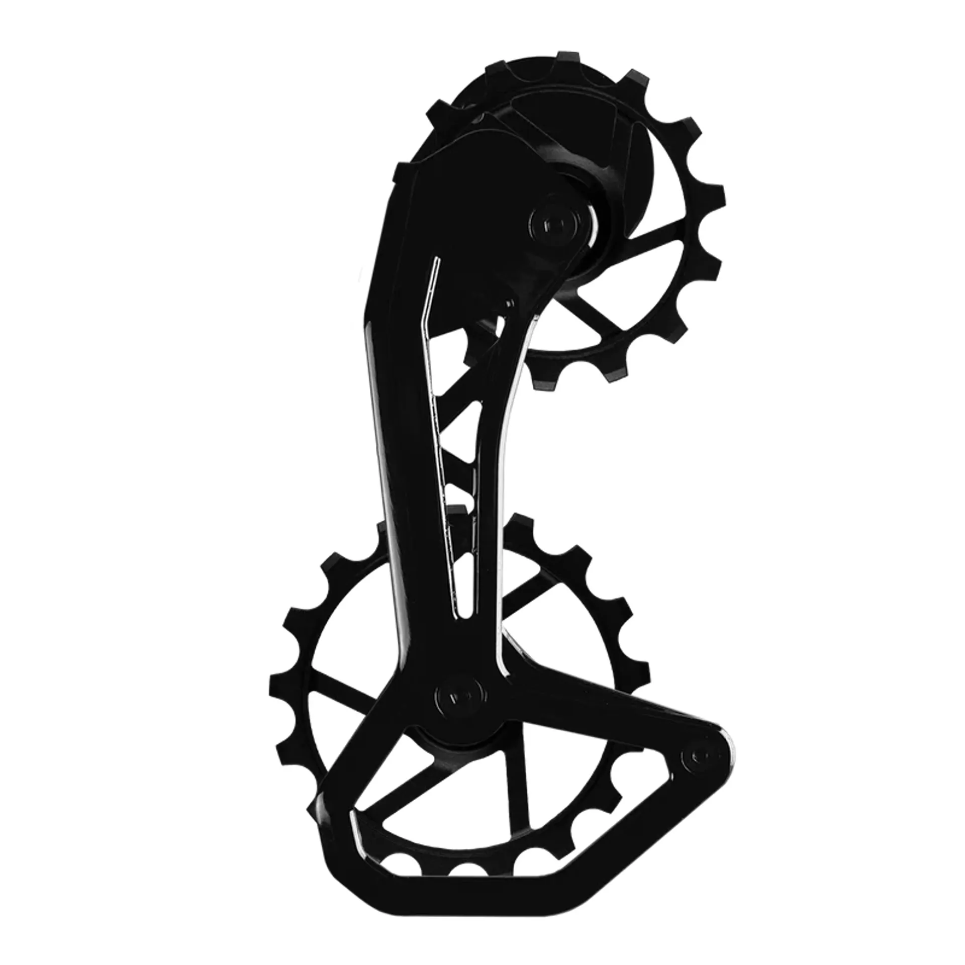 The Nova Ride CCD (Carbon Ceramic Derailleur) EVO V OSPW is an oversized pulley wheel system upgrade for road bike derailleurs finished with a gloss black lacquer to tie in with your aesthetic preferences.