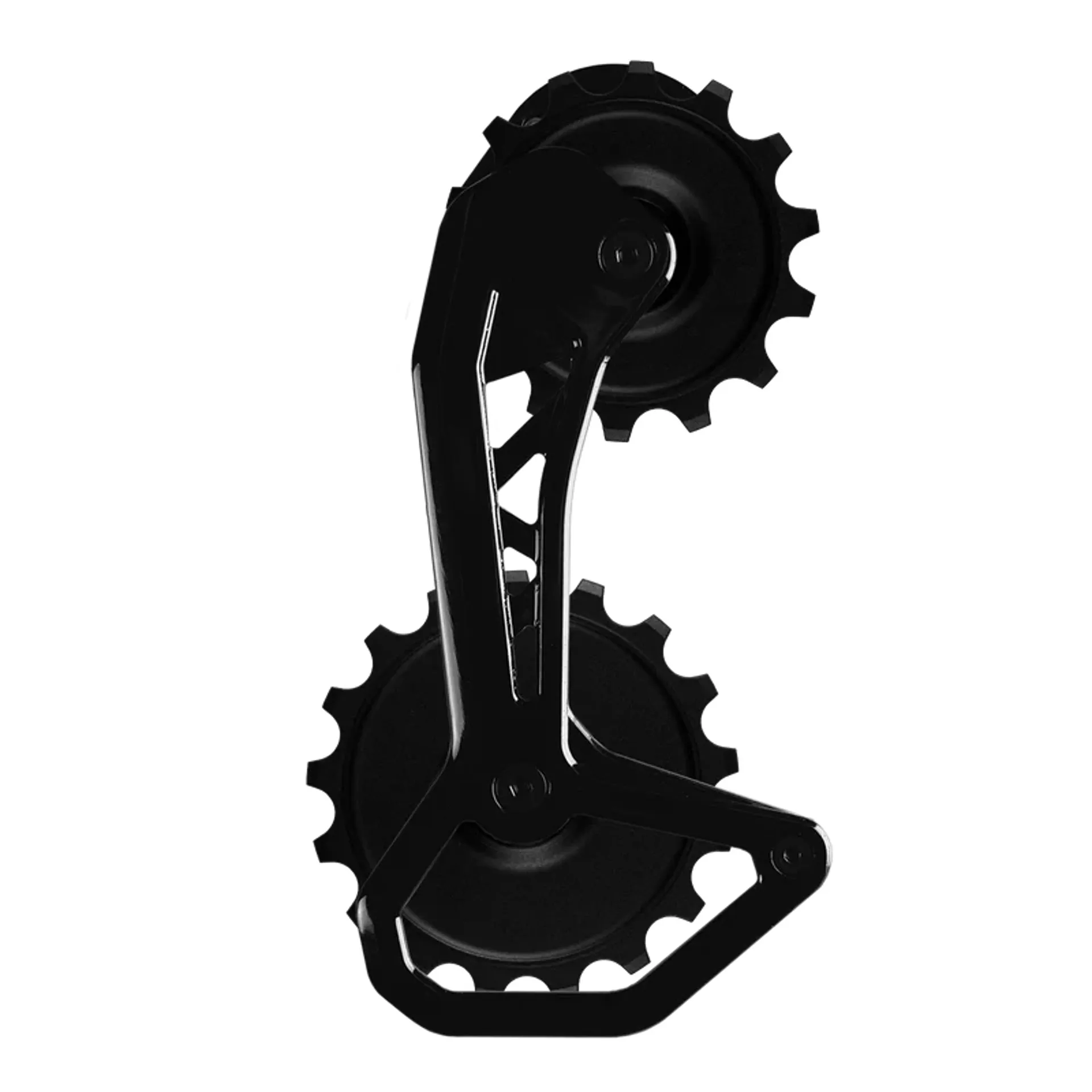 The Nova Ride CCD (Carbon Ceramic Derailleur)EVO VS OSPW is an oversized pulley wheel system upgrade for road bike derailleurs and is finished with a Gloss black lacquer to tie in with your groupset.